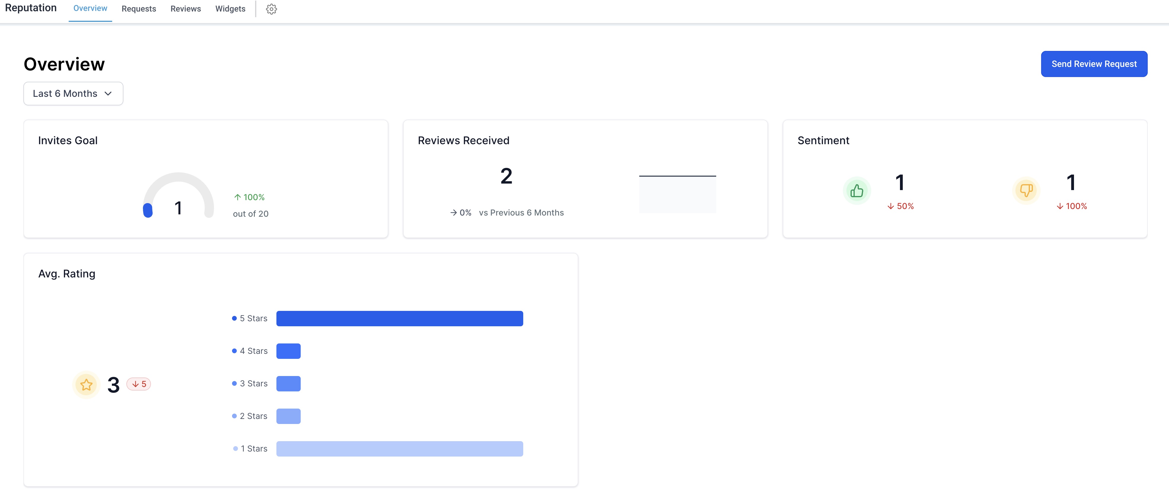 Navigate to your widget management area in your CRM software and open the Reviews tool.